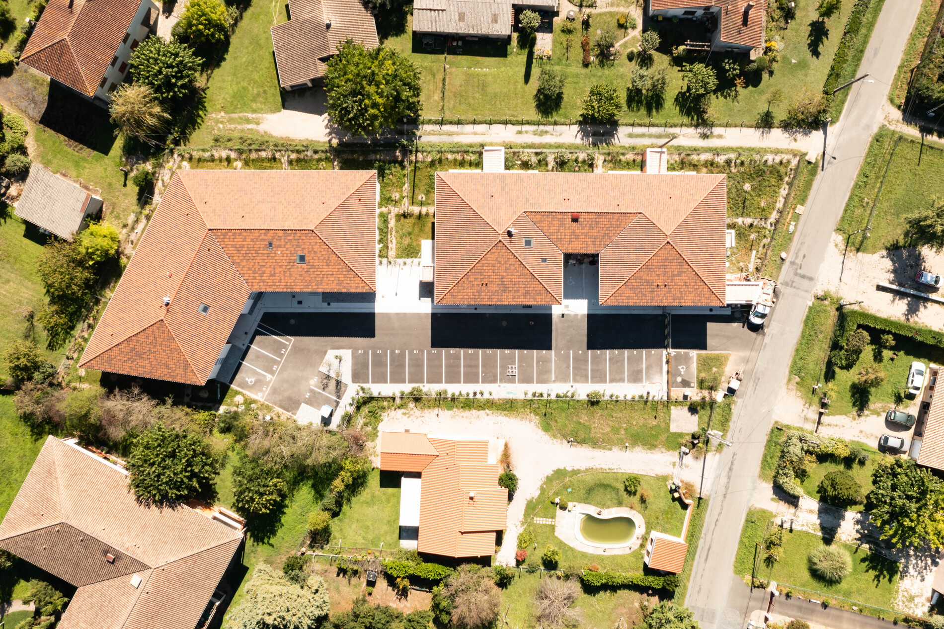 - Programme : Le programme consiste en la démolition d’une maison existante et de son annexe puis en la construction de deux immeubles collectifs : le bâtiment B (8 logements) et le bâtiment A (12 logements) avec balcons, en R+1, un parking aérien et des dispositifs permettant d’assurer la rétention des eaux pluviales.